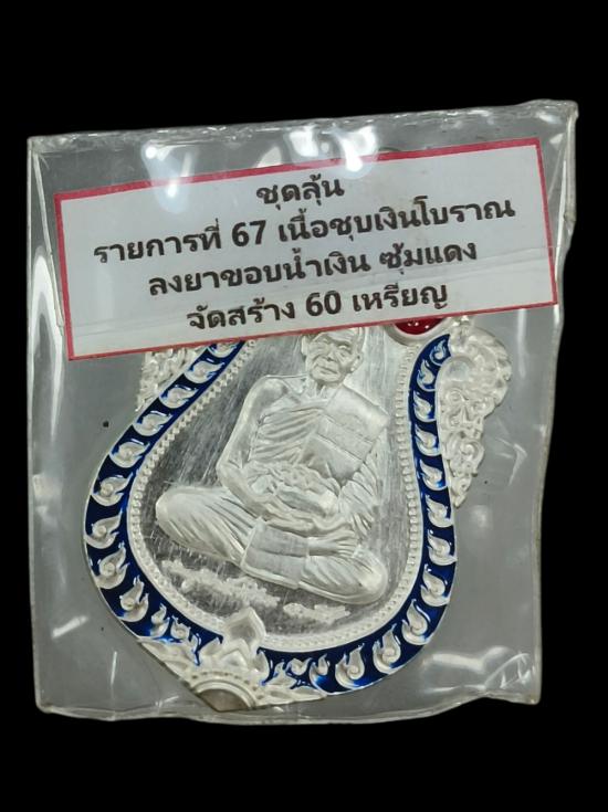 เหรียญเสมากฐิน 67 ลป.ธูป วัดลาดน้ำขาว บางปลาม้า สุพรรณบุรี รายการที่ 67 เนื้อชุบเงินโบราณลงยาขอบน้ำเงินซุ้มแดงจัดสร้าง 60 เหรียญ สวยๆกล่องเดิมวัดใจ 100 แดงครับ |