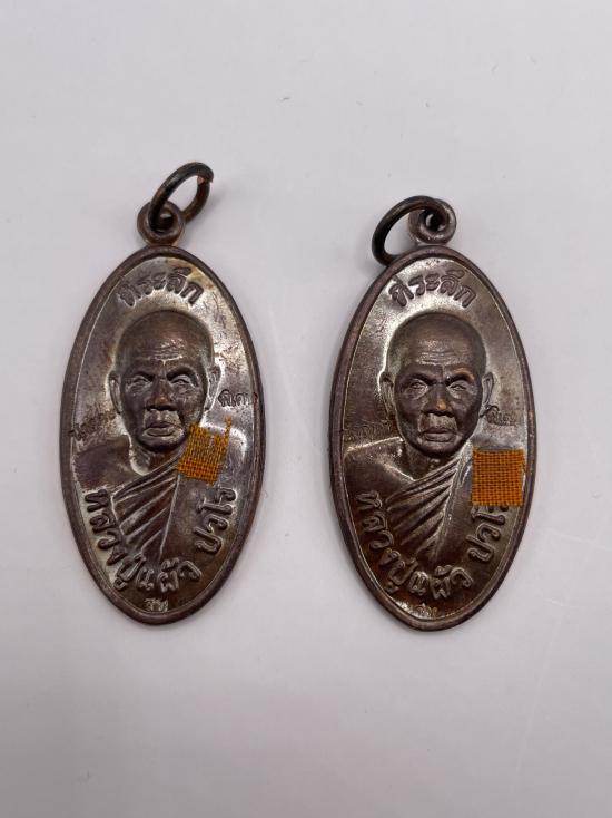 หลวงปู่แผ้ว วัดรางหมัน เนื้อทองแดง รุ่นพิเศษ โค้ตนำฤกษ์ 2 องค์ |
