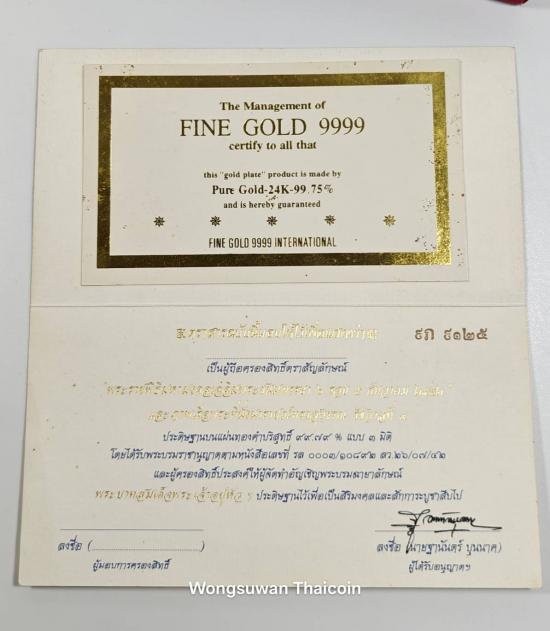 ตราสารทองคำมหามงคลเฉลิมพระเกียรติ 72 พรรษา "พระราชพิธีมหามงคลเฉลิมพระชนมพรรษา 6 รอบ 5 ธันวาคม 2542" และภาพเรือพระที่นั่งนารายณ์ทรงสุบรรณ รัชกาลที่9 ประดิษฐานบนแผ่นทองคำบริสุทธิ์ 99.99% แบบ3มิติ