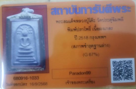 พระสมเด็จปรกโพธิ์ หลวงปู่โต๊ะ วัดประดู่ฉิมพลี ปี 2518 เลี่ยมทองพร้อมบัตร