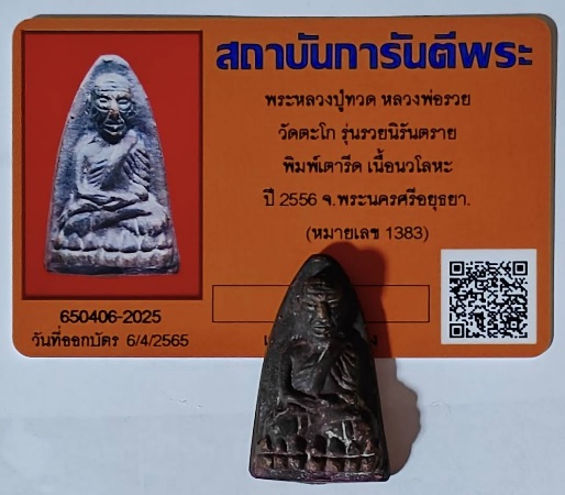 หลวงปู่ทวด หลวงพ่อรวย วัดตะโก"รวยนิรันตราย"เนื้อนวะโลหะ ปี2556 (๑๓๘๓) ไม่เคยผ่านการใช้งาน |