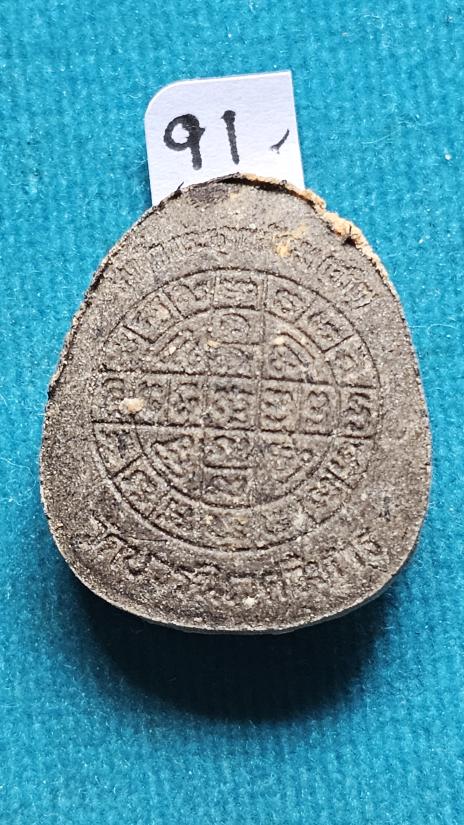 พระปิดตายันต์ดวงเล็ก เนื้อ 2 สี ด้านหน้าเกสร ด้านหลังใบลาน ตะกรุดเงินครับ(91) |