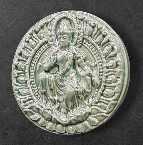 องค์พ่อจตุคาม รามเทพ รุ่น เสวยสุข เนื้อกระเบื้องเคลือบสีเขียวมุก ขนาด 5 ซม. กล่องเดิม |