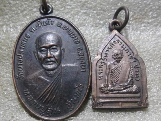 วัดใจเคาะเดียว.......100.......เหรียญหลวงพ่อสุ่น วัดบางปลาหมอ หลังพระเจ้า 5 พระองค์ อยุธยา + เหรียญหลวงพ่อปาน วัดบางนมโค หลังยันต์เกราะเพชร รวม 2 เหรียญ |