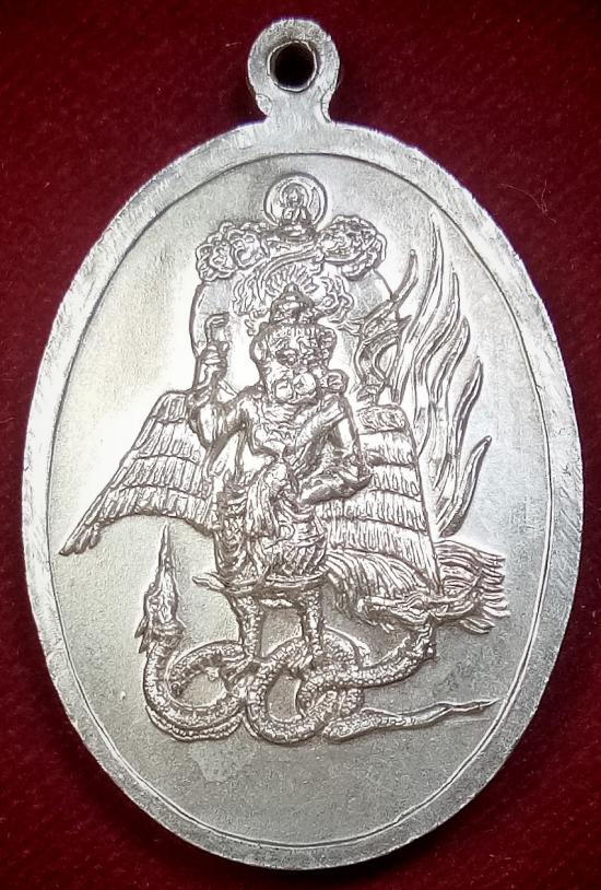 เหรียญ พระพุทธ หลังครุฑจับนาค วัดทิพยวารีวิหาร(กัมโล่วยี่) วังบูรพา.....กะไหล่เงิน |
