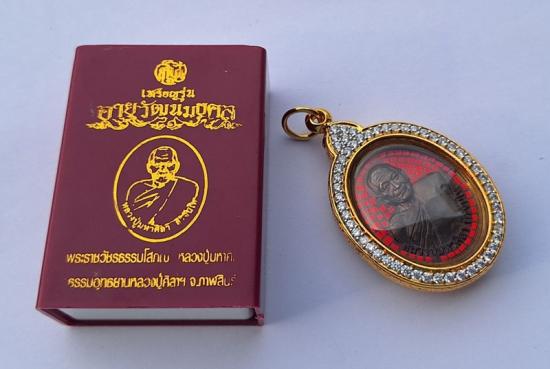 วัดใจ หลวงปู่ศิลา สิริจันโท รุ่นอายุวัฒนมงคล81 เหรียญไข่พิมพ์ย้อนยุครุ่นแรก เนื้อนวะลงยาสีแดง พร้อมกรอบชุบน้ำทอง No.471