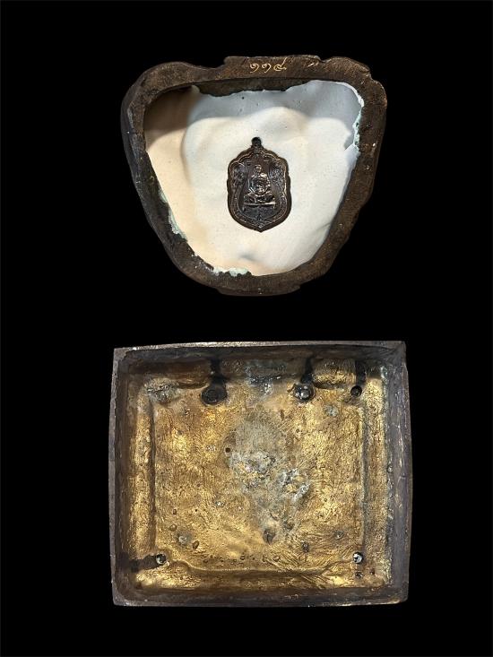 ~~ใต้ฐานฝังเหรียญ และมีทรายปลุกเสก หมายเลข ๑๑๔