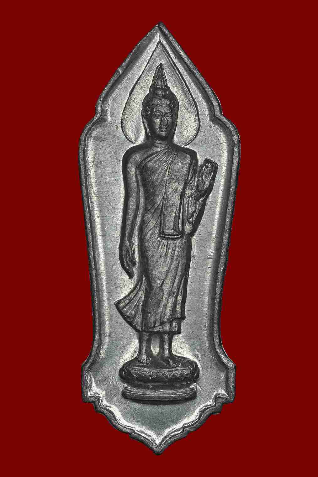 (((วัดใจ)))พระลีลา 25 พุทธศตวรรษ ปี พ.ศ.2500 เนื้อชินตะกั่ว บล็อคสังฆาฏิจุด
