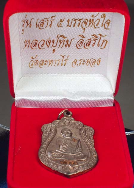เหรียญเสมา รุ่นเสาร์ 5 บรรจุหัวใจหลวงปู่ทิมองค์ใหญ่ วัดละหารไร่ อ.บ้านค่าย จ.ระยอง เนื้อนวะโลหะ หมายเลข 13451 พร้อมกล่องเดิม