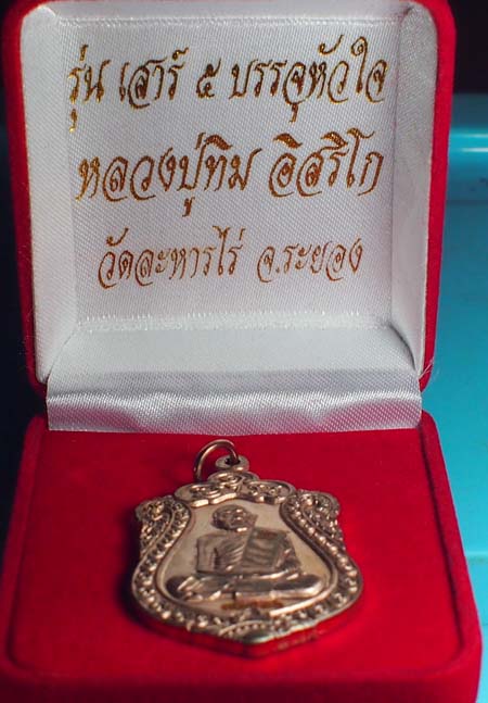 เหรียญเสมา รุ่นเสาร์ 5 บรรจุหัวใจหลวงปู่ทิมองค์ใหญ่ วัดละหารไร่ อ.บ้านค่าย จ.ระยอง เนื้อนวะโลหะ หมายเลข 12986 พร้อมกล่องเดิม