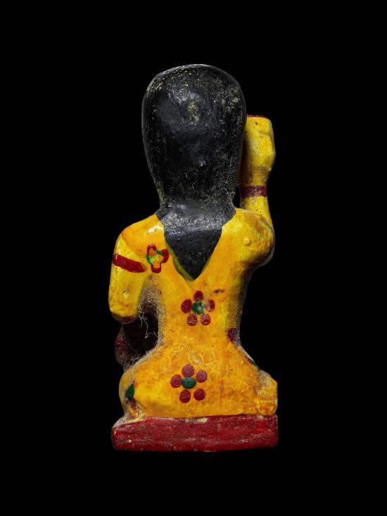 นางกวักหลวงพ่อย้อย วัดใหม่สุคนธาราม จ.นครปฐม เคลือบแชแล็ค สีฝุ่น จัดอยู่ในชุดเครื่องรางยอดนิยม จ.นครปฐม นางกวักหลวงพ่อแกะมาจากไม้ตะเคียนตายพรายหรือยืนต้นตายที่วัดท่าน จัดเป็นไม้ที่มีอาถรรพ์แรงหาไม่ได้ |