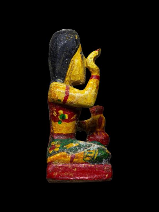 นางกวักหลวงพ่อย้อย วัดใหม่สุคนธาราม จ.นครปฐม เคลือบแชแล็ค สีฝุ่น จัดอยู่ในชุดเครื่องรางยอดนิยม จ.นครปฐม นางกวักหลวงพ่อแกะมาจากไม้ตะเคียนตายพรายหรือยืนต้นตายที่วัดท่าน จัดเป็นไม้ที่มีอาถรรพ์แรงหาไม่ได้ง่ายๆ ศิลป์นิยมครูเรือนขนตางอน สภาพสวย |