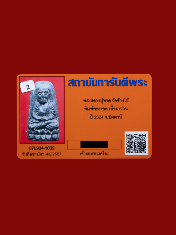 พระหลวงพ่อทวด เนื้อว่าน ปี 2524 พิมพ์พระรอด มีหน้าตา พิมพ์นิยม พร้อมบัตรรับรอง GPRA