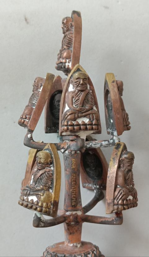 วัดใจเคาะเดียวแดงจ้า ช่อหล่อเตารีดหลวงปู่ทวด หลวงปู่ฝั้น ปสาโท ศิษย์หลวงพ่อเดิม วัดหนองโพธิ์ เนื้อชนวนโบราณ หมายเลข27 ช่อมี9องค์ เคาะเดียวแดงจ้า