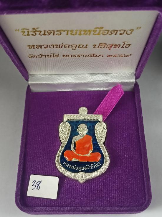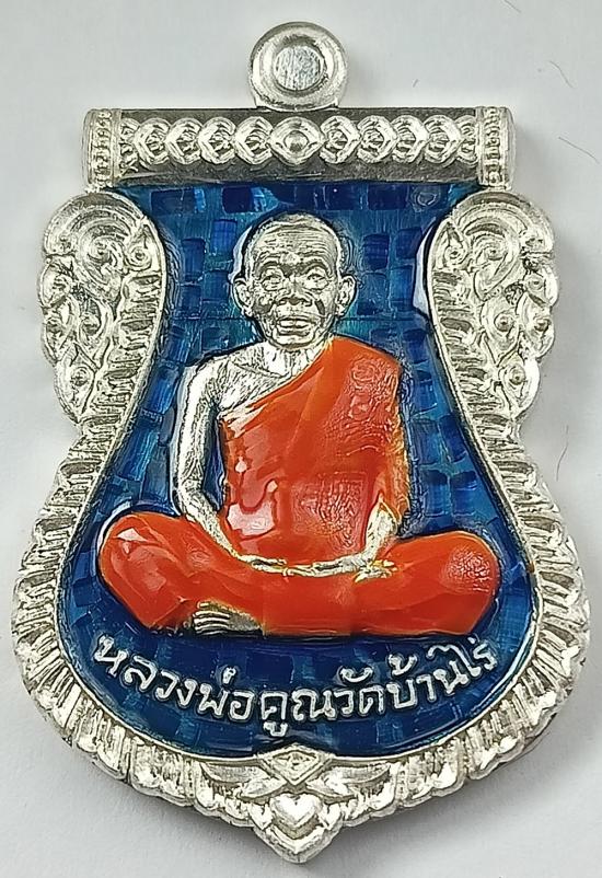 เหรียญเสมา "นิรันตรายเหนือดวง" หลวงพ่อคูณ ปี57 เนื้อเงินลงยาขุ้ยพื้นสีน้ำเงิน/ลงยาจีวร เบอร์ 38 พร้อมกล่องเดิมครับ