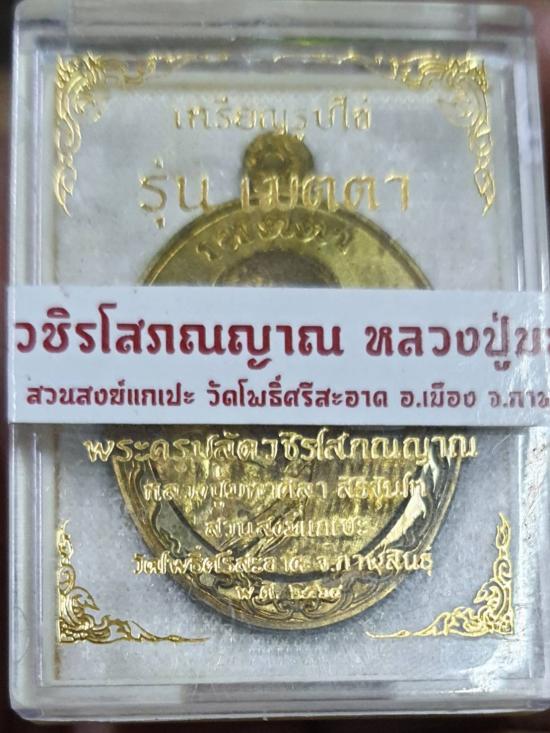 เหรียญเมตตา หลังหนุมาน ทาน้ำมันว่านโพรง เนื้อทองฝาบาตร No.281 กล่องเดิม |
