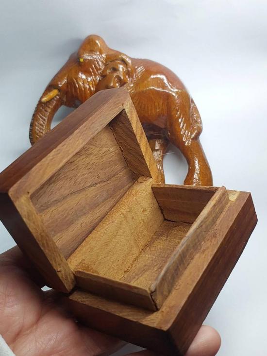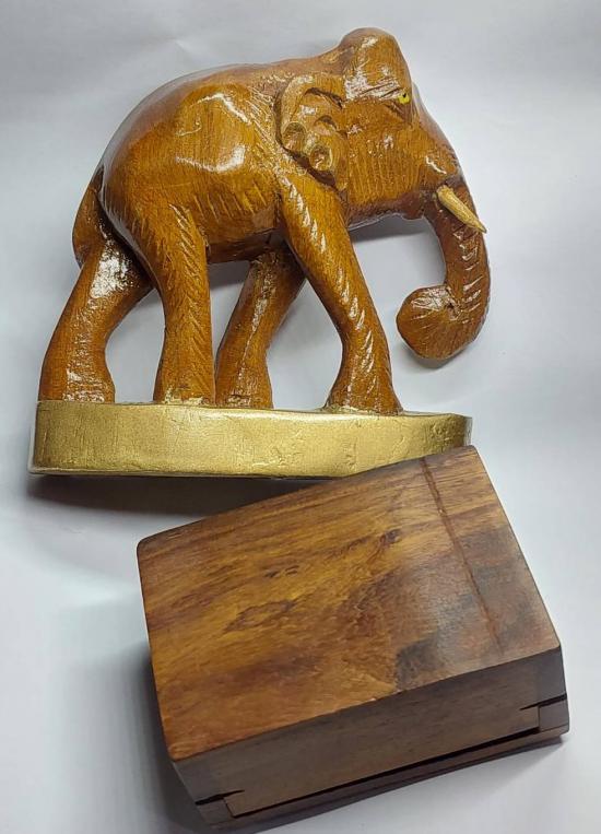 ตลับไม้เล็ก กับ ช้างแกะสลักไม้สัก สูง 4 นิ้ว |