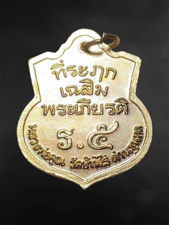 รายละเอียด เหรียญอาร์ม ที่ระฤกเฉลิมพระเกียรติ ร.5 หลวงพ่อคูณ วัดบ้านไร่ กะไหล่ทอง สวย