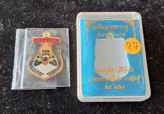 เหรียญพระราหูอมจันทร์ หลวงปู่มหาศิลา เมตตาอธิษฐานจิต รุ่นเหนือดวง เนื้อทองเหลืองลงยา เลขเบิ้ล No.77 |