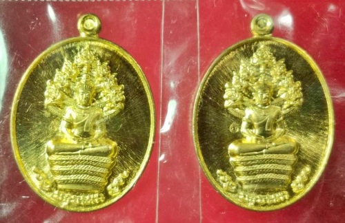 พระนาคปรก 7 รอบนักษัตร หลวงปู่บัวเกตุ ปทุมสิโร เนื้อทองฝาบาตร จำนวน 2 เหรียญ (3) |