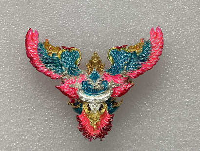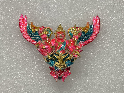 พญาครุฑมังรายศาสตร์ เศรษฐีอนันตทรัพย์ พระอาจารย์วิรุต วัดสันมะเหม้า จ.เชียงราย เนื้อชนวนทองขาว ลงยาองค์ชมพู สูง 4 ซ.ม. พิมพ์ใหญ่ กล่องเดิม |
