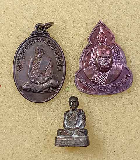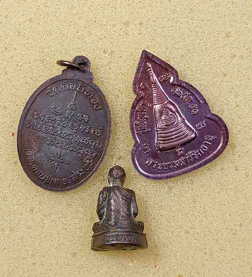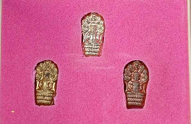 เหรียญ + พระชุดปรกใบมะขาม 3องค์ หลวงปู่นาค วัดหนองโป่ง สระบุรี |