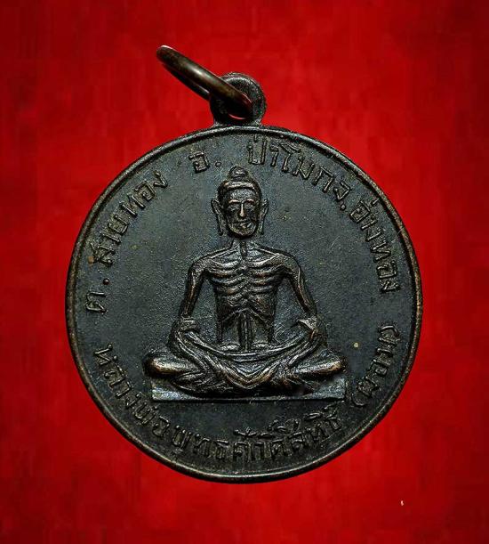 เหรียญรุ่นแรก หลวงพ่อพุทธศักดิ์สิทธิ์ (หลวงพ่อผอม) วัดพายทอง เนื้อทองแดง ปี2516 จ.อ่างทอง สวยเดิม |