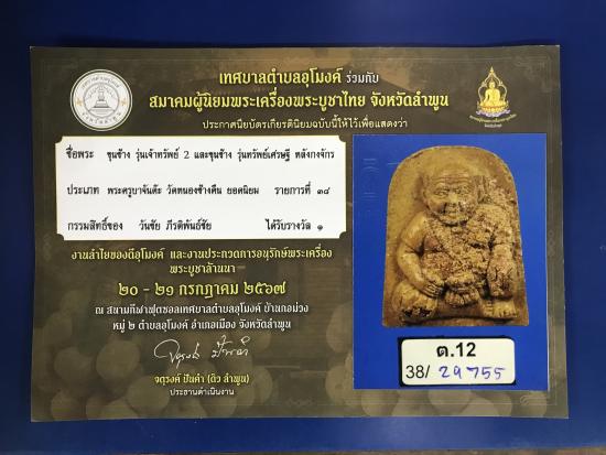 ขุนช้างครูบาจันต๊ะ รุ่นทรัพย์เศรษฐี บารมีอนาวิโล ครูบาจันต๊ะ วัดหนองช้างคืน จ.เชียงใหม่ ปี2563 หมายเลข 918 (เลขมังกร)กล่องเดิม พระสวนมาก((ติดที่1 งานใหญ่สมาคม งานลำพูน))
