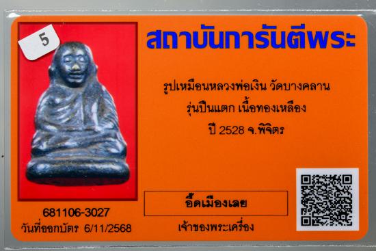 พระรูปหล่อโบราณ หลวงพ่อเงิน วัดบางคลาน รุ่นปืนแตก พิมพ์เศียรเล็ก เนื้อเก่า พ.ศ.2528 พร้อมบัตรรับรอง