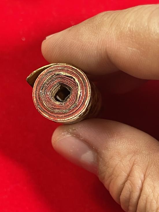 ตะกรุดใบลานเก่า มีจารอักขระไม่ทราบที่ครับ |