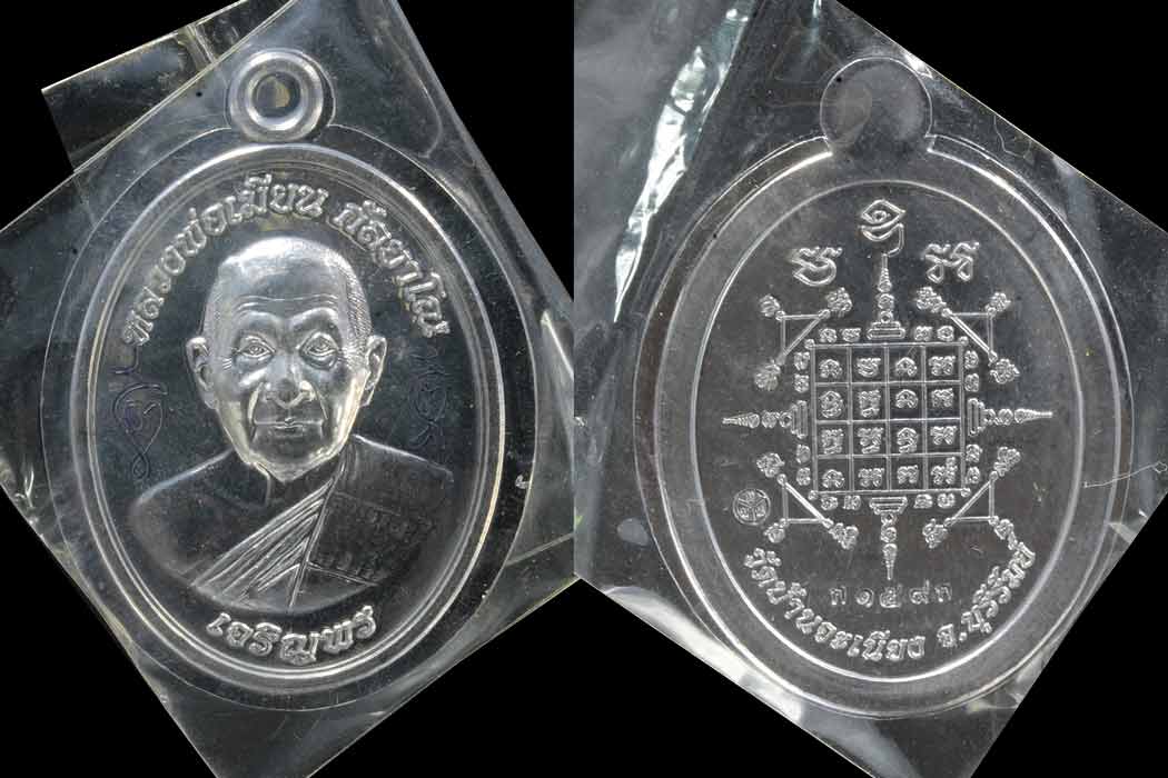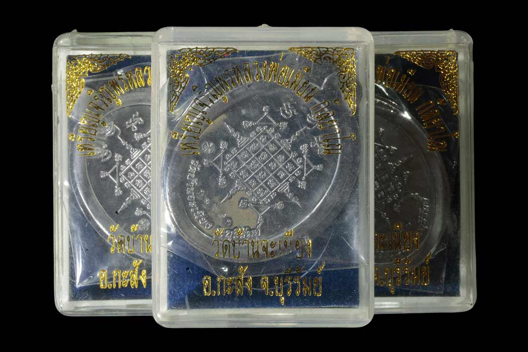 วัดใจ 3 เหรียญ เหรียญเจริญพรล่าง หลวงพ่อเมียน วัดบ้านจะเนียง เนื้อตะกั่วไม่ตัดปีก มีเลข มีโค๊ต พร้อมกล่อง |