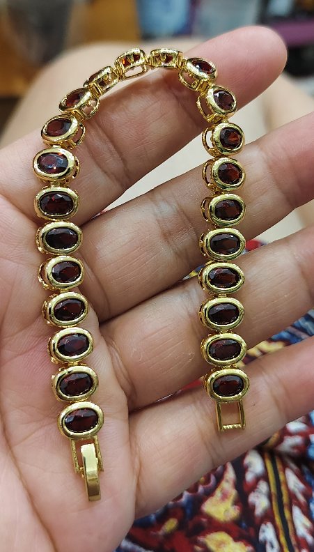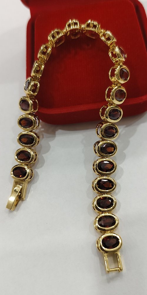 เทขาดทุน+ +เทปีใหม่++กำไลข้อมือโกเมน ยาว 7.นิ้ว งานจิวเวลลี่ชุบทองแท้