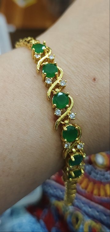 เทขาดทุน+ +เทปีใหม่++กำไลข้อมือมรกตยาว 7.นิ้ว งานจิวเวลลี่ชุบทองแท้ |