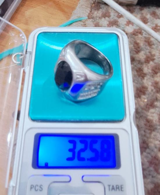 แหวนไซส์ใหญ่ไม่ทราบเนื้อหัวเป็นนิลดำหนักมาก32กรัม |