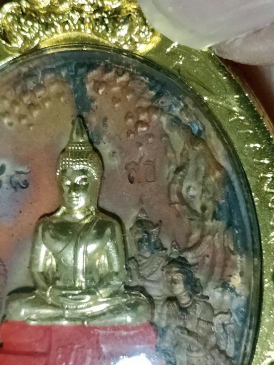 เหรียญหลวงพ่อโสธร เนื้อตะปูสังฆวานร หน้ากากชุบทอง เพ้นท์ฐานแดง หลังตะกรุด 3 กษัตริย์ เลี่ยมกรอบทอง ตอกโค๊ต สธ ตอกหมายเลข 88