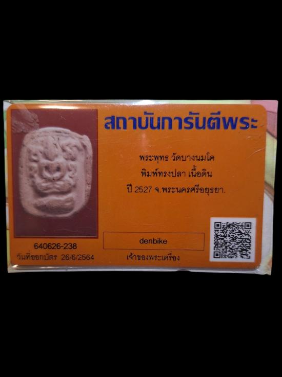 หลวงพ่อปาน วัดบางนมโค พิมพ์พระพุทธทรงปลา เนื้อดิน อุดผง ปี 2527 จ.พระนครศรีอยุธยา.พร้อมบัตรการันตรีพระ สภาพเดิมๆ |