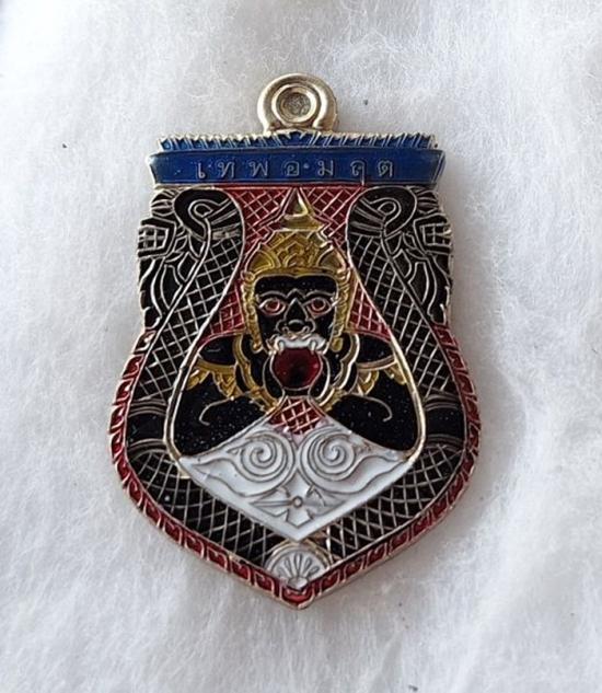 เหรียญพระราหูอมจันทร์ รุ่นเหนือดวง เนื้ออัลปาก้าลงยา ตอกเลข+ตอกโค๊ต พร้อมกล่อง |