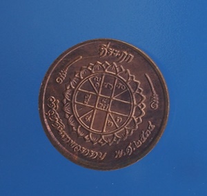 ช่องว่างระหว่างเหรียญลงจารมือด้วย อิสวาสุ หมายถึงหัวใจของพระพุทธเจ้าและตอกโค้ต ๙ หมายถึงความเจริญก้าวหน้าตลอดไปสำหรับผู้ใช้เหรียญนี้