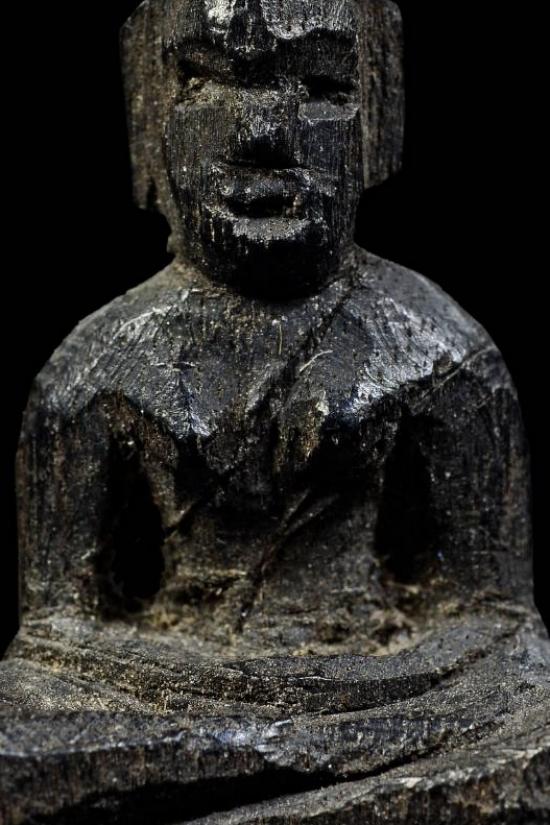 พระไม้แกะสลัก เนื้อดำ งานเก่าๆ "ขนาด ฐานกว้าง 1.7 cm สูง 3 ซม."