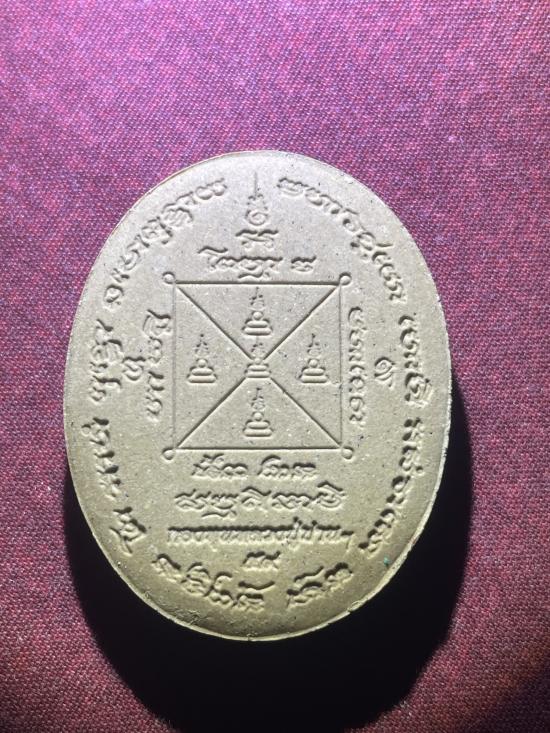 ได้อัญเชิญ ยันต์ท้าวมหาพรหม ซี่งเป็นยันต์ที่หลวงพ่อพระราชพรหมยานเถระใช้ประทับหลังวัตถุมงคลมีพุทธคุณนานาประการในทุกๆด้านเน้นเรื่องกำจัดอุปสรรคและอวมงคล ต่างๆรวมถึงส่งผลเรื่องมหามงคล มหาลาภ แก่ผู้สักการะบูชาและเคารพในพระไตรสรณคมน์ ล้อมอักขระขอม พรหมา จะ, มหาเทวา,สัพเพยักขา,ปะลา ยันติ ซึ่งเป็นคาถาปัดอุปสรรค ด้านซ้าย-ขวา-บนของยันต์มหาพรหม ลงอักขระขอมหัวใจคาถาที่หลวงปู่ปานใช้และตกทอดถึงพระเดชพระคุณหลวงพ่อฯ คือ มะ อะ อุ ใต้คำว่าสัพเพยักขามีคำว่าสัมปะติฉามิ คาถาที่ลงล้อมในวงไข่ลงด้วยพุทธคาถาคาถาคือ มหาวิชโย โหหิ อะสังวาโส และพระคาถาท้าวมหาราชคือ สัมมา สัมพุทธัสสะ พระอะระหังพุทโธ นะโมพุทธายะ ซึ่งคาถาเหล่านี้เป็นธรรมสมบัติที่พระเดชพระคุณหลวงพ่อฯให้กับพุทธบริษัทที่มีความเคารพในพระไตรสรณคมน์ ซึ่งมาพุทธาคุณตามแต่ผู้เคารพจะอธิษฐาน และในด้านหลังนี้ได้จารึกคำว่า กองทุนหลวงปู่ปานฯ ๕๙ เป็นสัญญาลักษณ์มีแต้มเนื้อพิเศษ 173สุปฏิปันโนและเกศาหลวงพ่อพระราชพรหมยาน,เกศาครูบาวงศ์,เกศาหลวงปู่ดู่ตรงกลางยันต์ท้าวมหาพรหมตรงองค์เพื่อเป็นอาจาริยะบูชา |
