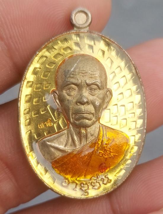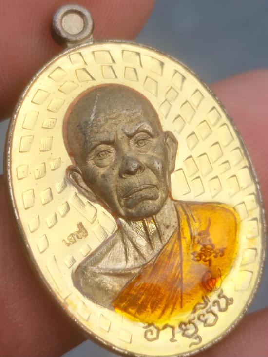 เหรียญอายุยืนหลวงพ่อคูณ คุ้ยพื้นลงยาเหลือง วัดบ้านไร่ จ.นครราชสีมา ปี๕๗ ไม่มีกล่อง