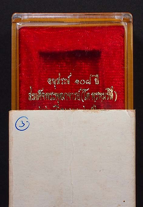 พระสมเด็จ วัดระฆัง รุ่น 108 ปี พิมพ์ใหญ่บาง เนื้อผง ปี 2523 จ.กรุงเทพ หลังตรายาง มีกล่องเดิมพร้อมซองกระดาษหุ้มกล่องและบัตรรับรองสถาบันการันตีพระ