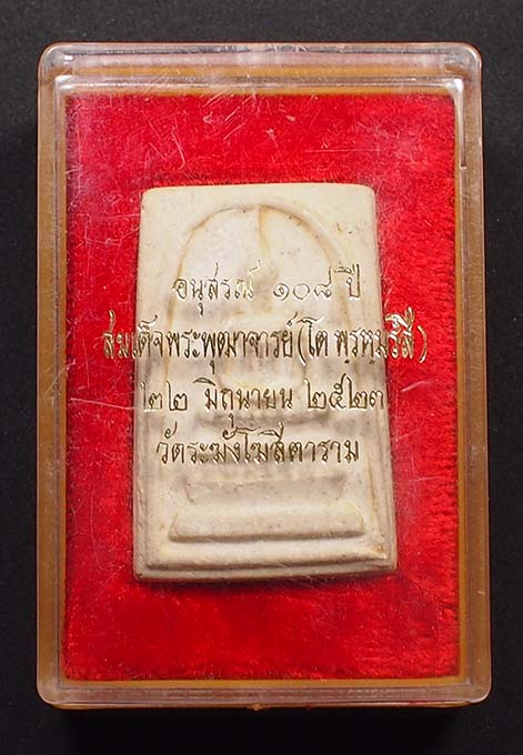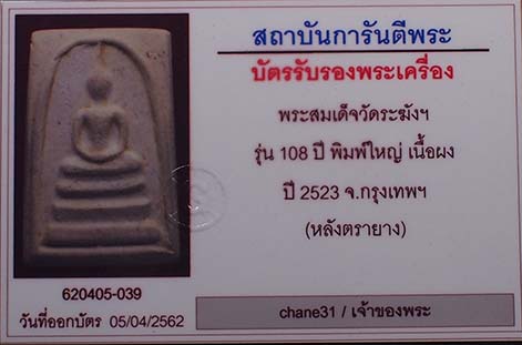 พระสมเด็จ วัดระฆัง รุ่น 108 ปี พิมพ์ใหญ่ เนื้อผง ปี 2523 จ.กรุงเทพ หลังตรายาง พร้อมกล่องเดิมและบัตรรับรองสถาบันการันตีพระ