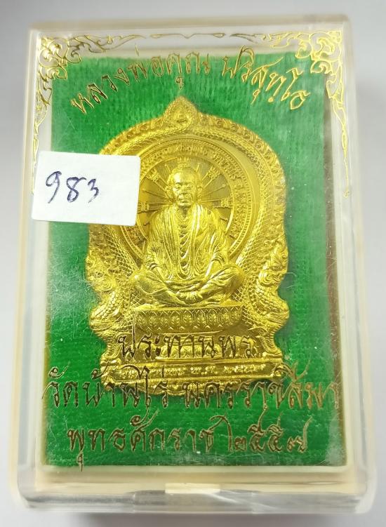 เหรียญนั่งพาน "ประทานพร" หลวงพ่อคูณ วัดบ้านไร่ ปี57 เนื้อทองฝาบาตร เบอร์ 983 พร้อมกล่องเดิมครับ