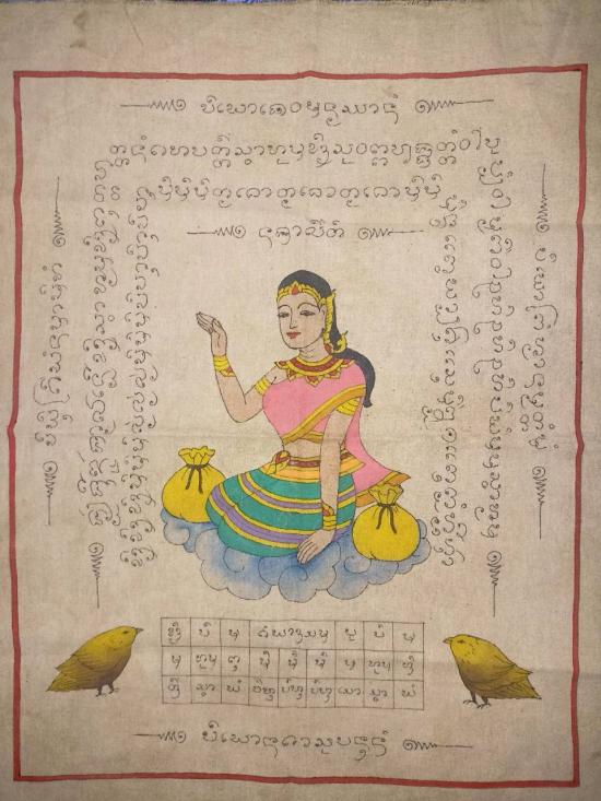 ผ้ายันต์แม่นางกวัก มนต์เสน่ห์แห่งเครื่องราง งานเขียนมือ ล้วนๆ ยุคใหม่ ขนาด 44*57 ซม. **เป็นผ้ายันต์สาย เมตตาโชคลาภค้าขาย |