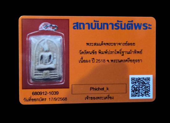 พระสมเด็จมีกินอาจารย์ลอย โพธิ์เงิน วัดจีน(รัตนชัย) ปี 2518 พิมพ์ฐานผ้าทิพย์ จ.อยุธยา