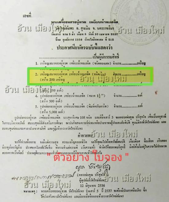 -ปลุกเสก : วันเสาร์ แรม 5 ค่ำ เดือน 5 วันที่ 30 เมษายน พ.ศ.2537