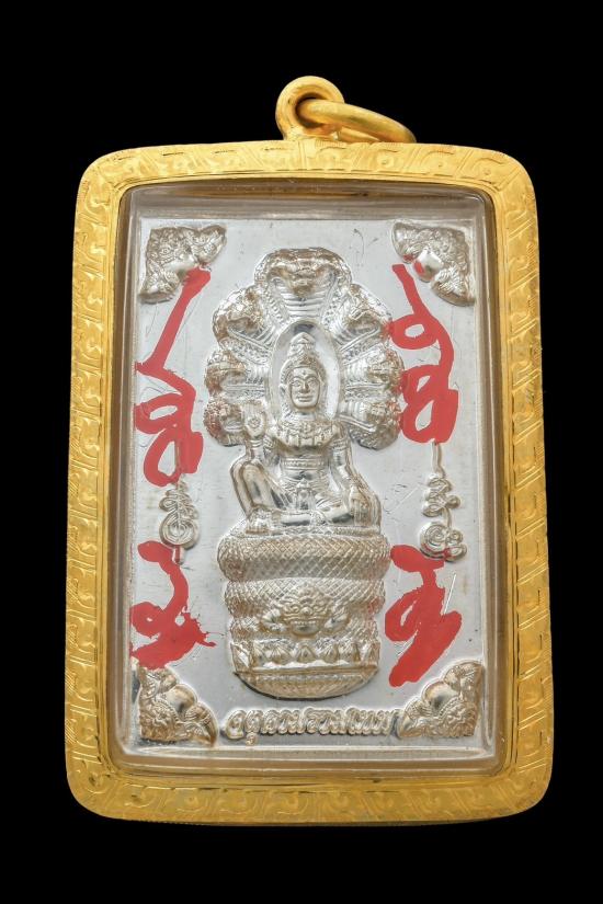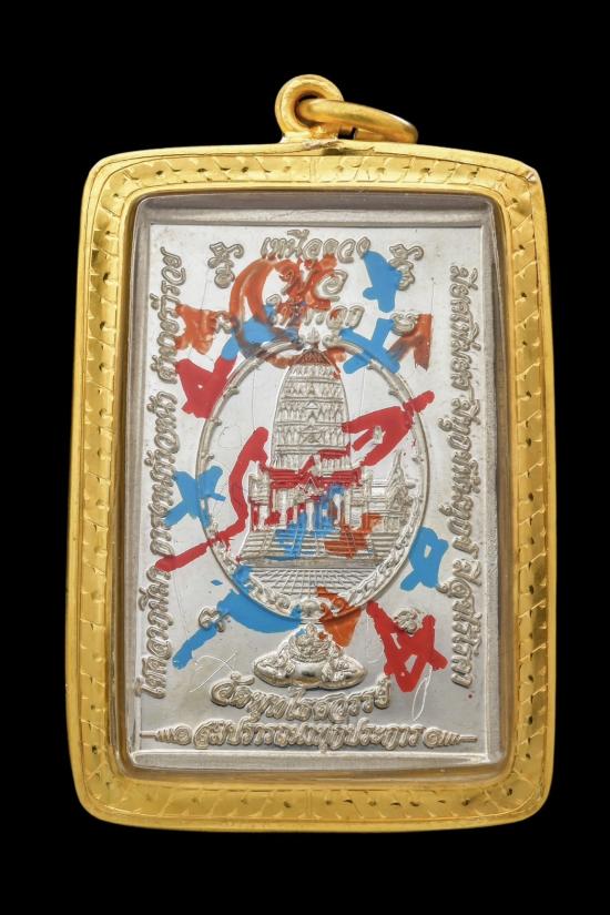 เหรียญเหนือดวง วัดพุทไธสวรรค์ ปี 49 เนื้อเงิน สภาพสวย จารสีสวยๆ พร้อมเลี่ยมทอง