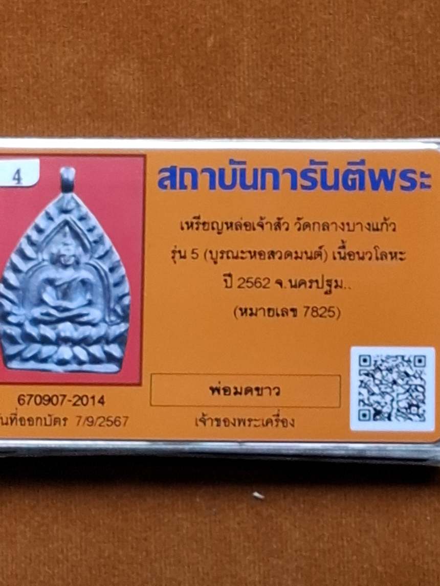 เจ้าสัว 5 วัดกลางบางแก้ว รุ่น บูระณหอสวดมนต์ เนื้อนวะโลหะ ปี62 กล่องเดิม no.๗๘๒๕ พร้อมบัตรรับรอง |