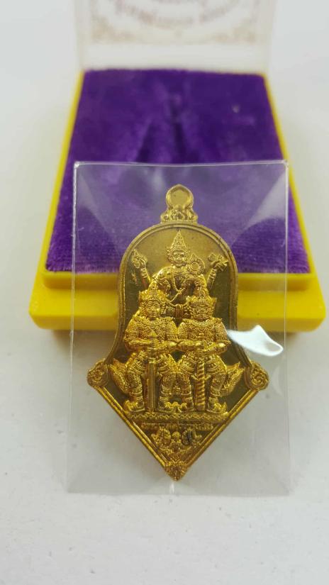เหรียญท้าวเวสสุวรรณโณ จตุมหาราชิกา พิมพ์ทรงจำปี 3 เทพ (สามเทพ) รุ่น 1 มีแล้วไม่จน หลวงพ่ออิฐ วัดจุฬามณี เนื้อทองทิพย์เลข2948 ปี 2564 |